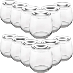 Stikla burciņas 300 ml ar platu kakliņu un noapaļotu formu ir perfekti piemērotas jogurta parfait, pudiņiem, mussiem, augļu desertiem, medum, mērcēm vai bērnu biezeņiem. Caurspīdīgais stikls nodrošina pievilcīgu kārtu prezentāciju, tādēļ tās ir piemērotas gan mājās, gan svinībās.