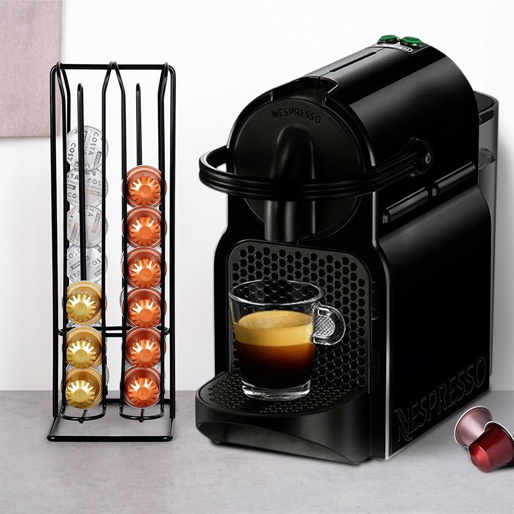 Elegants un stabils statīvs kapsulām, kas ir saderīgs ar NESPRESSO, ietilpina līdz 32 kapsulām četrās kolonnās. Tam ir kompakti izmēri 12,5 × 10 × 30 cm, tas ir izgatavots no kvalitatīva melna metāla un, pateicoties praktiskai konstrukcijai, nodrošina ātru piekļuvi iecienītajām garšām, vietas ietaupījumu uz virtuves virsmas un stilīgu jūsu virtuves izskatu.
