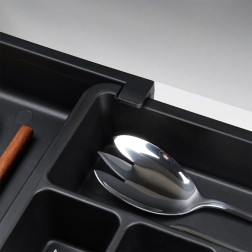 Pārdomāti, dažāda platuma nodalījumi atdala karotes, dakšas, nažus un lāpstiņas, lai visu varētu ātri atrast un ik dienu uzturēt kārtību.