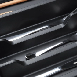 - Vairāk nodalījumu – pārskatāmai galda piederumu, nažu un piederumu kārtošanai.
