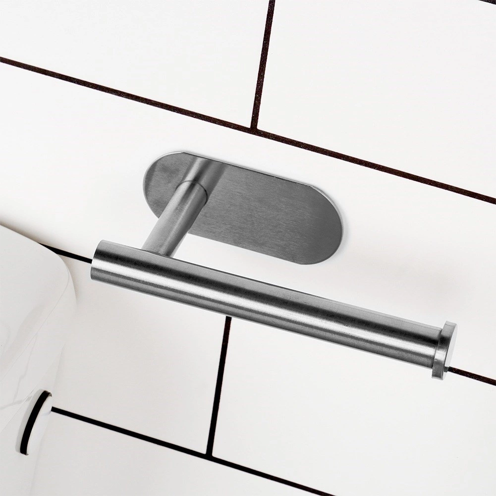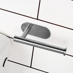 Praktisks un izturīgs tualetes papīra turētājs no nerūsējošā tērauda sudraba krāsā piešķirs jūsu vannasistabai mūsdienīgu dizainu, vienkāršu lietošanu un ilgu kalpošanas laiku. Kompakti izmēri 16,5 × 7,7 × 4,5 cm un vienkārša montāža bez urbšanas ar komplektā iekļauto divpusējo līmlenti.
