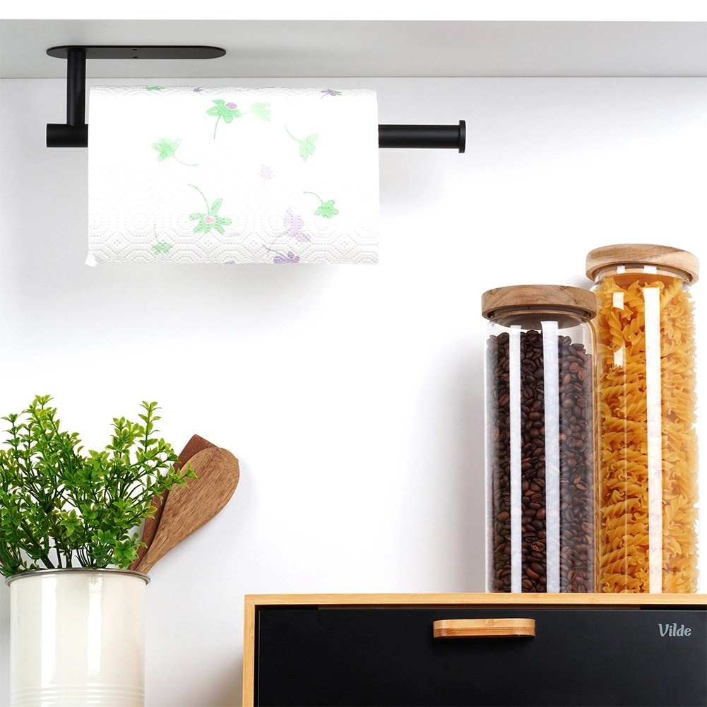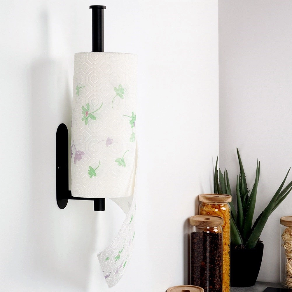 Praktisks papīra dvieļu turētājs no izturīga nerūsējošā tērauda melnā krāsā virtuvei, vannasistabai un birojam. Nodrošina ātru lapas noplēšanu, vietas ietaupījumu un ērtu piekļuvi gatavošanas un uzkopšanas laikā. Komplektā ir iekļauta līmlente un skrūves, lai varētu izvēlēties bezurbšanas vai stingru montāžu.