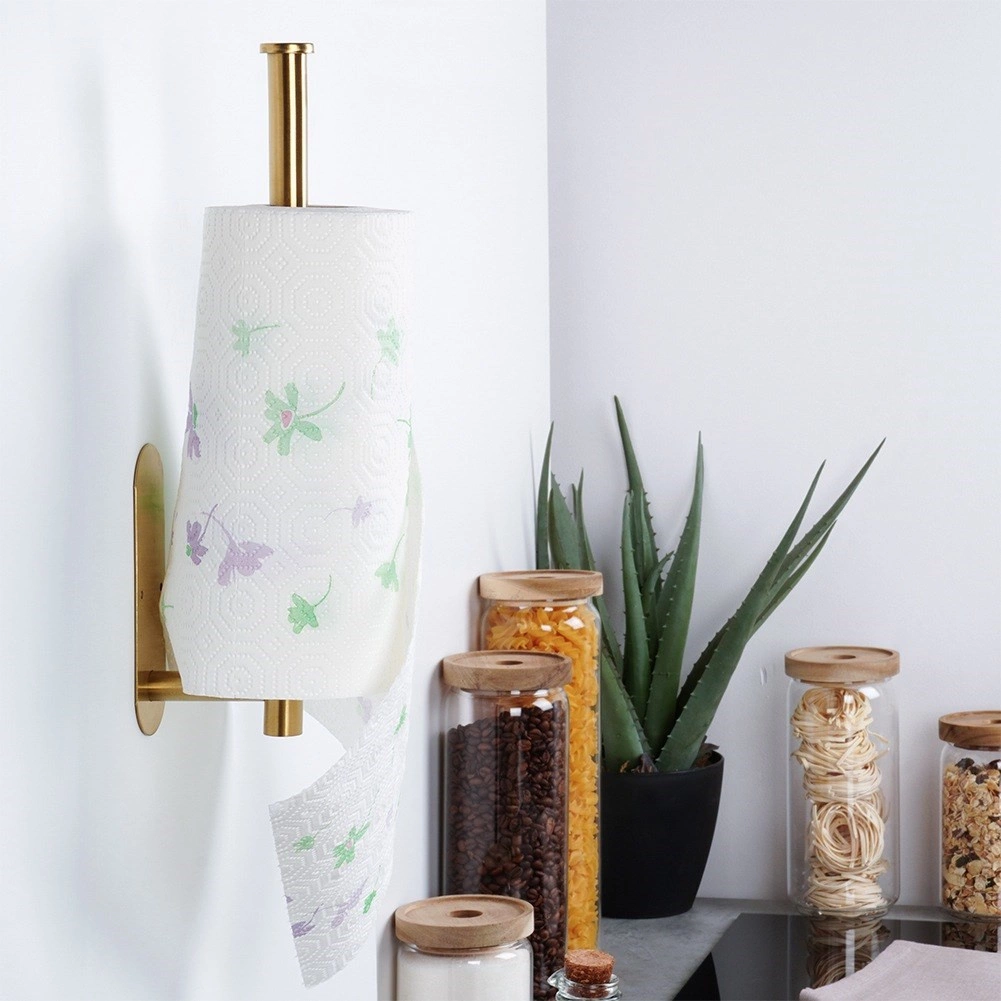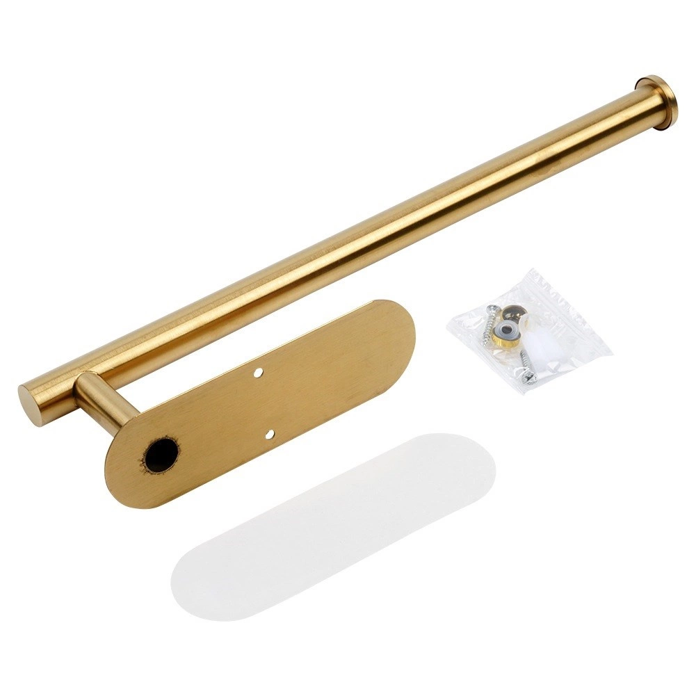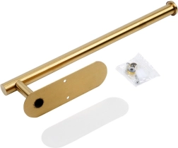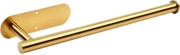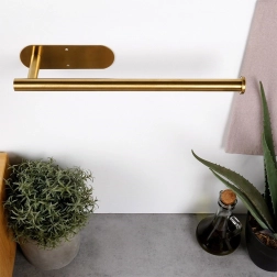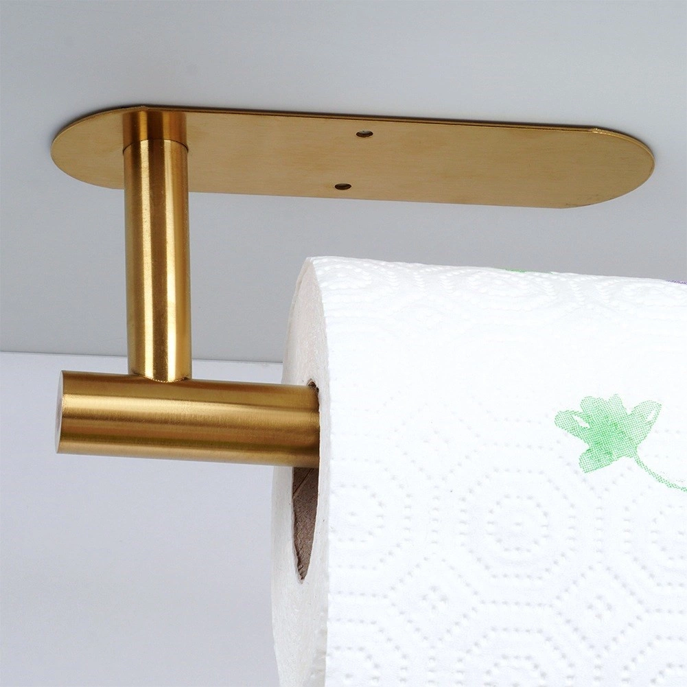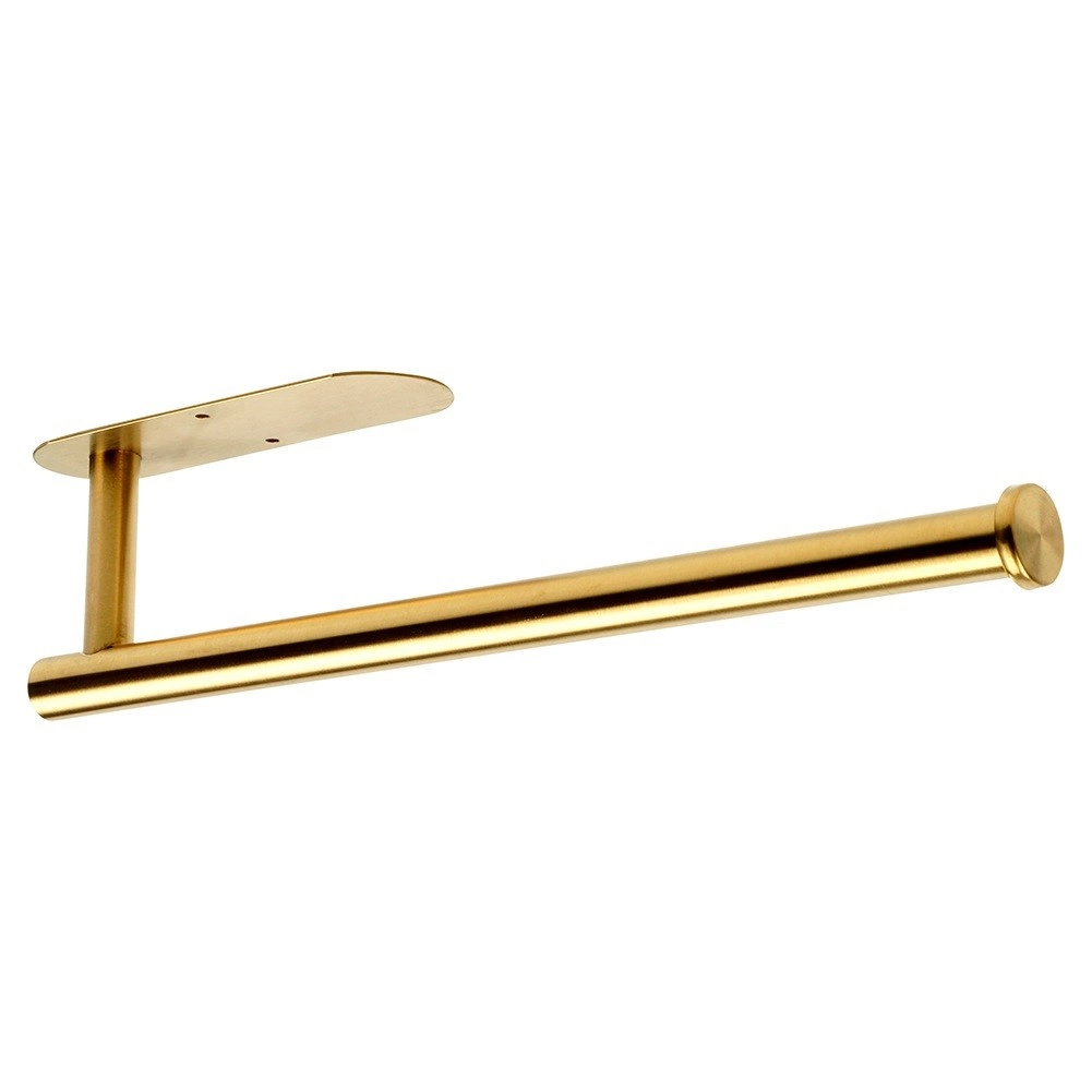 Elegants papīra dvieļu turētājs greznā zelta krāsā no nerūsējošā tērauda ietaupa vietu un padara virtuvi pārskatāmāku. Pateicoties universāliem izmēriem, tas der lielākajai daļai ruļļu, nodrošina ātru lokšņu noplēšanu un to var viegli uzstādīt pie sienas vai zem skapīša. Iepakojumā iekļauta lente un skrūves, lai izvēlētos uzstādīšanas veidu.