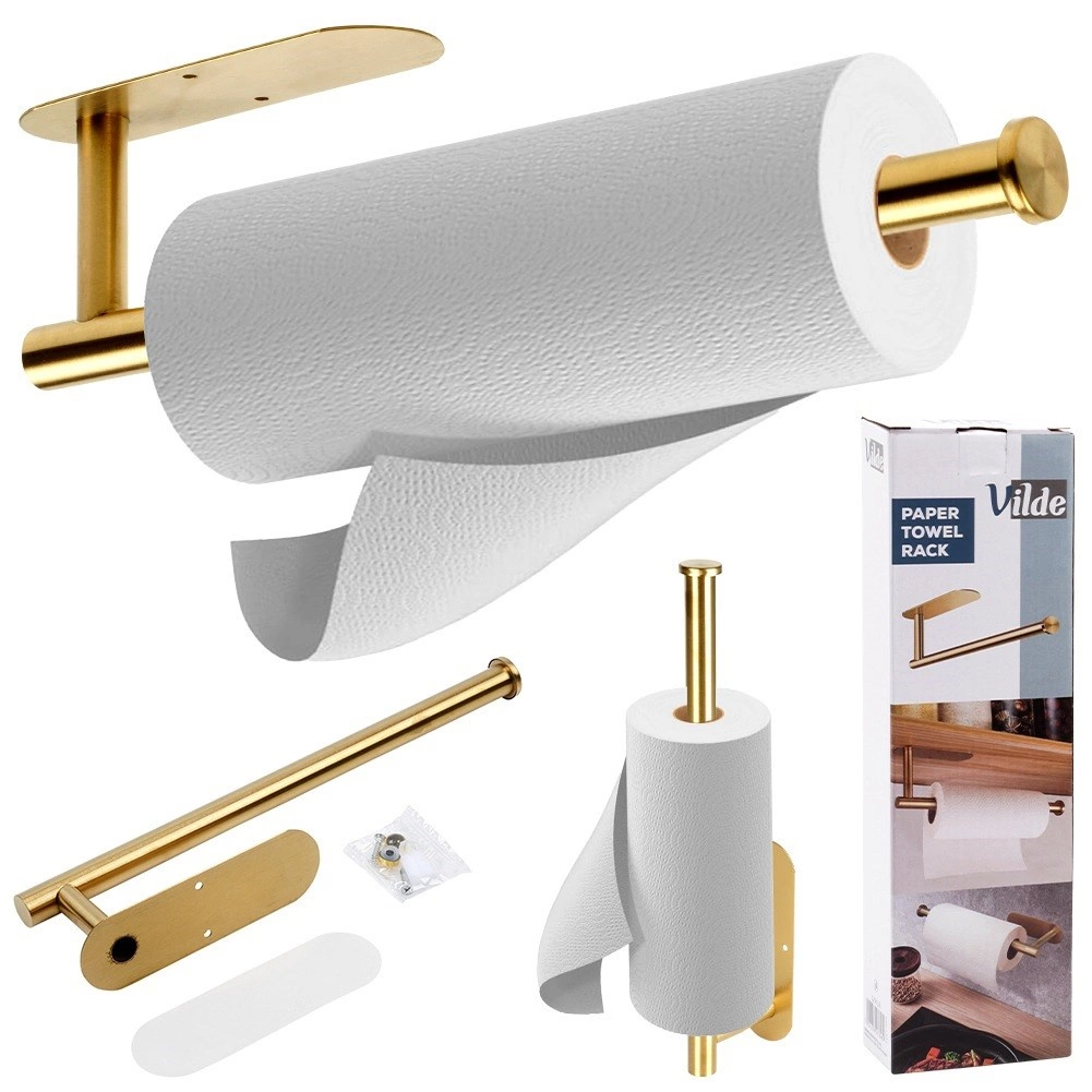 Atvieglojiet gatavošanu un uzkopšanu ar praktisko papīra dvieļu turētāju Vilde. Minimalistisks dizains ar slīpētu zelta apdari iederas gan modernā, gan klasiskā virtuves, vannasistabas vai biroja interjerā. Nerūsējošais tērauds nodrošina noturību pret mitrumu un ilgu kalpošanas laiku.