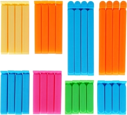 Iepakojumā atradīsiet 32 klipšus: 8× 15,5 × 1,5 cm, 8× 11 × 1,5 cm, 8× 9 × 1,5 cm un 8× 7 × 1,5 cm. Piemēroti gan maziem, gan lieliem pārtikas iepakojumiem.