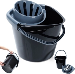 Praktisks plastmasas spainis ar 14 l ietilpību un noņemamu spiedēju gan lentveida, gan auklu mopiem. Piedāvā izturīgu konstrukciju, ērti satveramu rokturi drošai pārvietošanai un veidotu noteku tīrai un precīzai ūdens izliešanai bez šļakatām. Ideāls palīgs mājas, darbnīcas un dārza uzkopšanai.