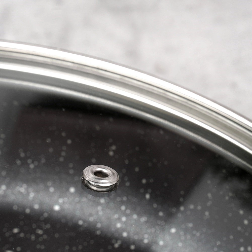 Universāls stikla vāks ar diametru 24 cm ar izturīgu nerūsējošā tērauda apmali, ērti satveramu rokturi ar koka izskatu un ventilācijas atveri. Pateicoties karstumizturīgam stiklam, varat vērot gatavošanas procesu, nepaceļot vāku, ēdiens pagatavosies ātrāk un virtuve paliks bez liekas šļakstīšanās.