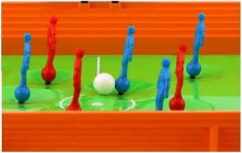 Piedzīvojiet īstas spēles emocijas mājās. Šis galda futbols izmanto atsperu vadību spēlētājiem – vienkārši ieliecam figūriņu vajadzīgajā virzienā un raidām bumbiņu uzbrukumā. Vārtsargu var aktīvi vadīt, bet virs tribīnēm atrodas manuāls rezultāta rādītājs, lai rezultāts vienmēr būtu jūsu kontrolē.