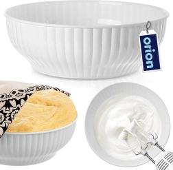 Šī universālā baltā bļoda ir uzticams palīgs ikdienas gatavošanai un cepšanai. Pateicoties 2,5 l tilpumam, tā viegli tiks galā ar mīklas maisīšanu, krēmu putošanu un salātu pagatavošanu. Vertikālais rievējums nodrošina ērtu un drošu satvērienu, bet mūžīgais dizains piestāvēs jebkuram galdam.