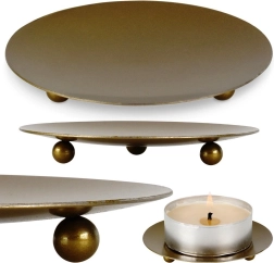 Atklājiet stilīgu un funkcionālu papildinājumu jūsu mājām – metāla sveču paliktni matētā zelta tonī. Zemais šķīvītis uz trim lodveida kājiņām nodrošina lielisku stabilitāti un nelielu pacēlumu virs virsmas, kas palīdz novadīt siltumu un aizsargā mēbeles no vaska un karstuma. Minimalistisko izskatu ir viegli saskaņot ar jebkuru interjera stilu.