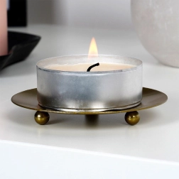 Pateicoties kvalitatīvam metāla izpildījumam, paliktnis ir izturīgs un lieliski der tējassvecēm un mazākām svecēm. Tikpat labi tas kalpo kā dekoratīvs paliktnītis rotām vai sīkām dekorācijām. Neliela detaļa ar izteiktu efektu, kas piešķirs telpai eleganci un mājīgu noskaņu.