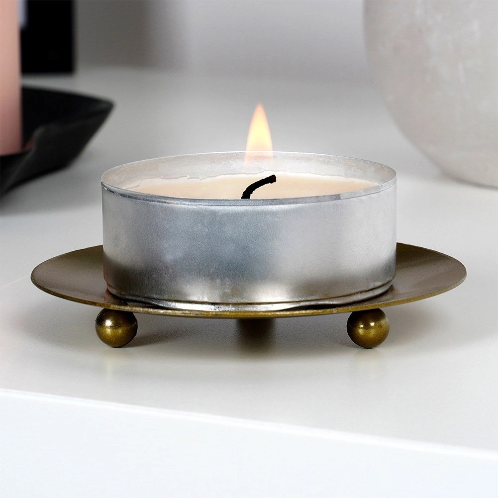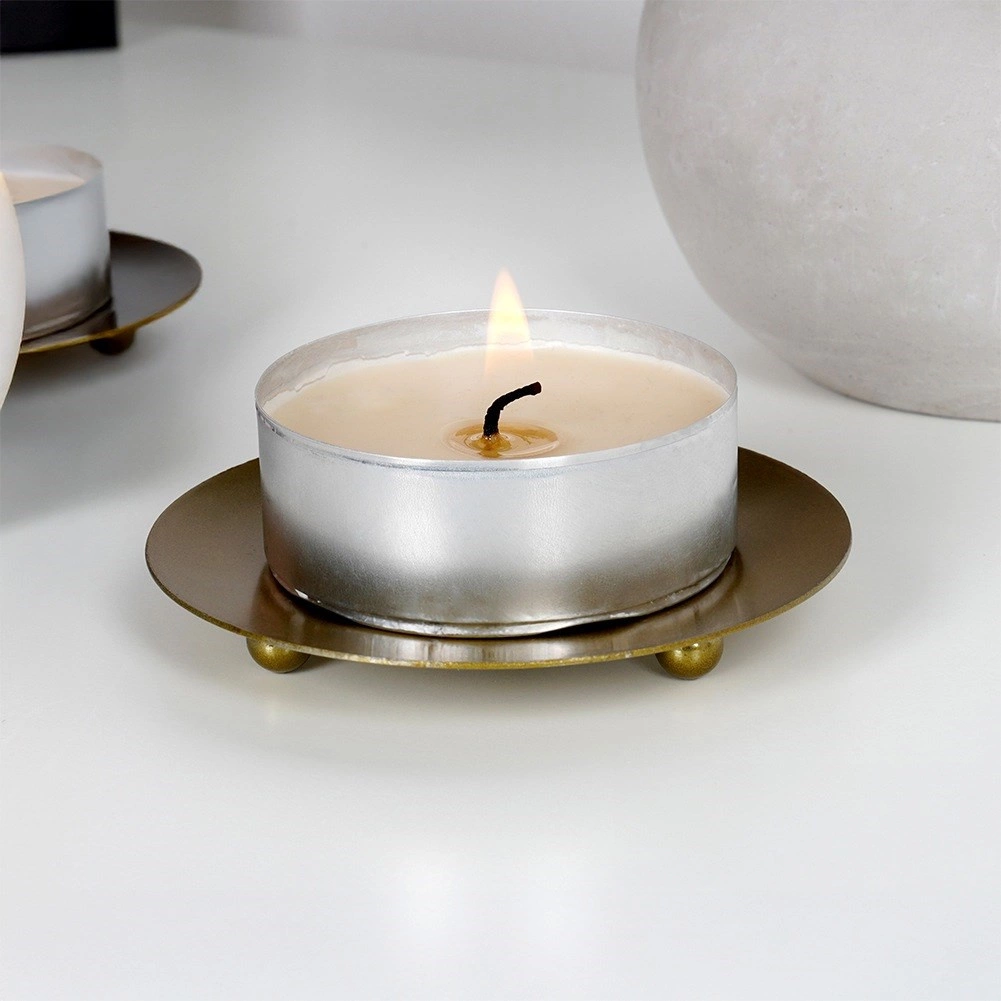Zems šķīvītis nodrošina drošu un stabilu vietu tējassvecēm, pasargā no vaska notecēšanas un karstuma.