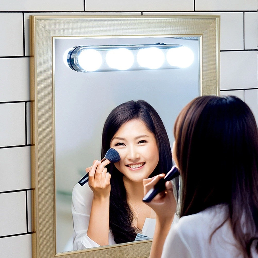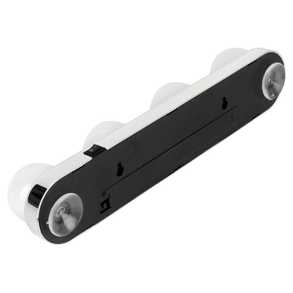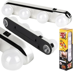 Praktisks spoguļa apgaismojums ar četrām LED spuldzēm nodrošina spilgtu un vienmērīgu baltu gaismu grimmam un ikdienas kopšanai. Pateicoties vienkāršai montāžai ar piesūcekņiem bez instrumentiem, to ātri piestiprināsiet pie jebkura gluda spoguļa. Tas ir darbināms ar baterijām, mobils un izgatavots no kvalitatīva, izturīga materiāla, tāpēc lieliski der vannasistabai, guļamistabai un garderobei.