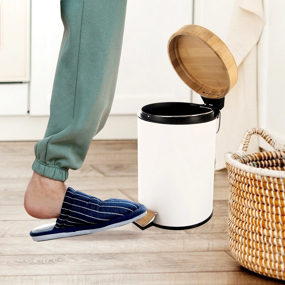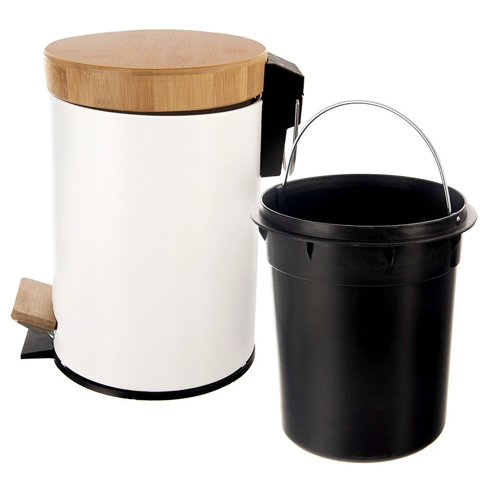 Kompakts atkritumu spainis ar tilpumu 3 l elegantā baltā izpildījumā ar bambusa vāku un pedāli lieliski iederas vannasistabā, birojā vai guļamistabā. Klusā un higiēniskā atvēršana ar kājas pedāli, izņemama iekšējā ieliktnis ērtai iztukšošanai un mūsdienīgs, minimālistisks dizains jebkurai videi.