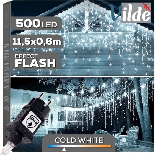 Stilīgs gaismas aizkars ar 500 taupīgām LED radīs apburošu svētku dekoru uz fasādes, pergolā vai interjerā. Caurspīdīgie vadi un dažāda garuma karājamie zari (35, 40, 45 un 60 cm) veido reālistisku mirdzošu lāsteku efektu, dažas diodes maigi iemirdzas vēl iespaidīgākam izskatam.