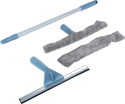 Šis 4-daļīgais logu mazgāšanas komplekts ir ideāli piemērots mājām, birojiem un ziemas dārziem. Teleskopiskais kāts ar 50–95 cm diapazonu ļauj droši tīrīt bez kāpnēm, mikrošķiedra efektīvi absorbē netīrumus, bet ūdeni ātri noslauka gumijas noskrāpētājs, nodrošinot kristāldzidrus logus bez švīkām.