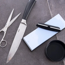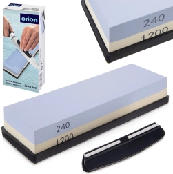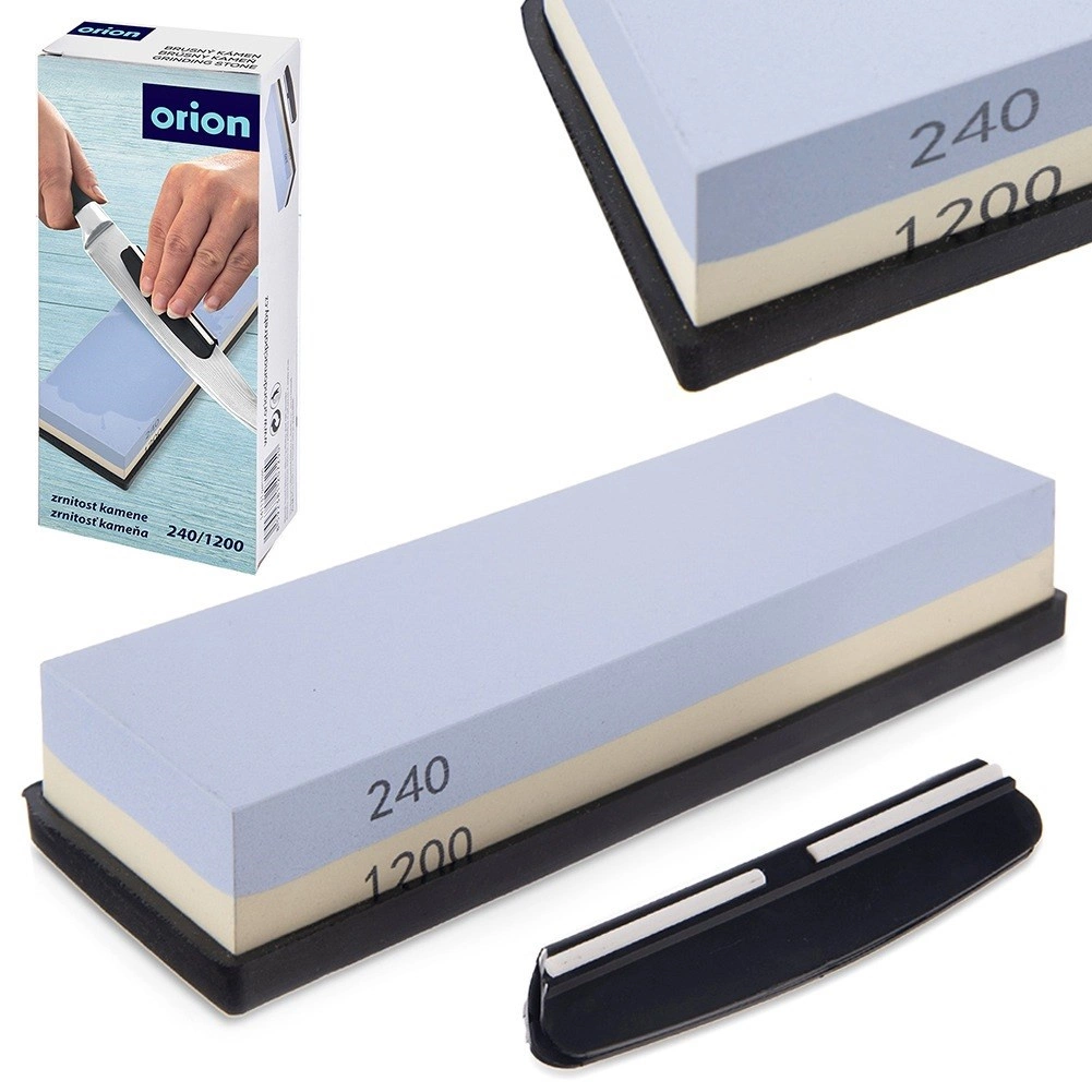 Universāls divpusējs ūdens asināmais no korunda ar vadotnes sliedi pareizam leņķim 15–20°. Piedāvā divas graudainības 240/1200 gan rupjai asināšanai, gan smalkai pulēšanai, stabilu pret-slīdes pamatni no silikona un ērtu lietošanu virtuves nažiem, šķērēm un dārza instrumentiem.