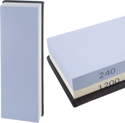 Rupjā puse #240 ātrai asmens atjaunošanai, smalkā #1200 izlīdzināšanai un pulēšanai – ideāla kombinācija pilnvērtīgai nažu kopšanai.