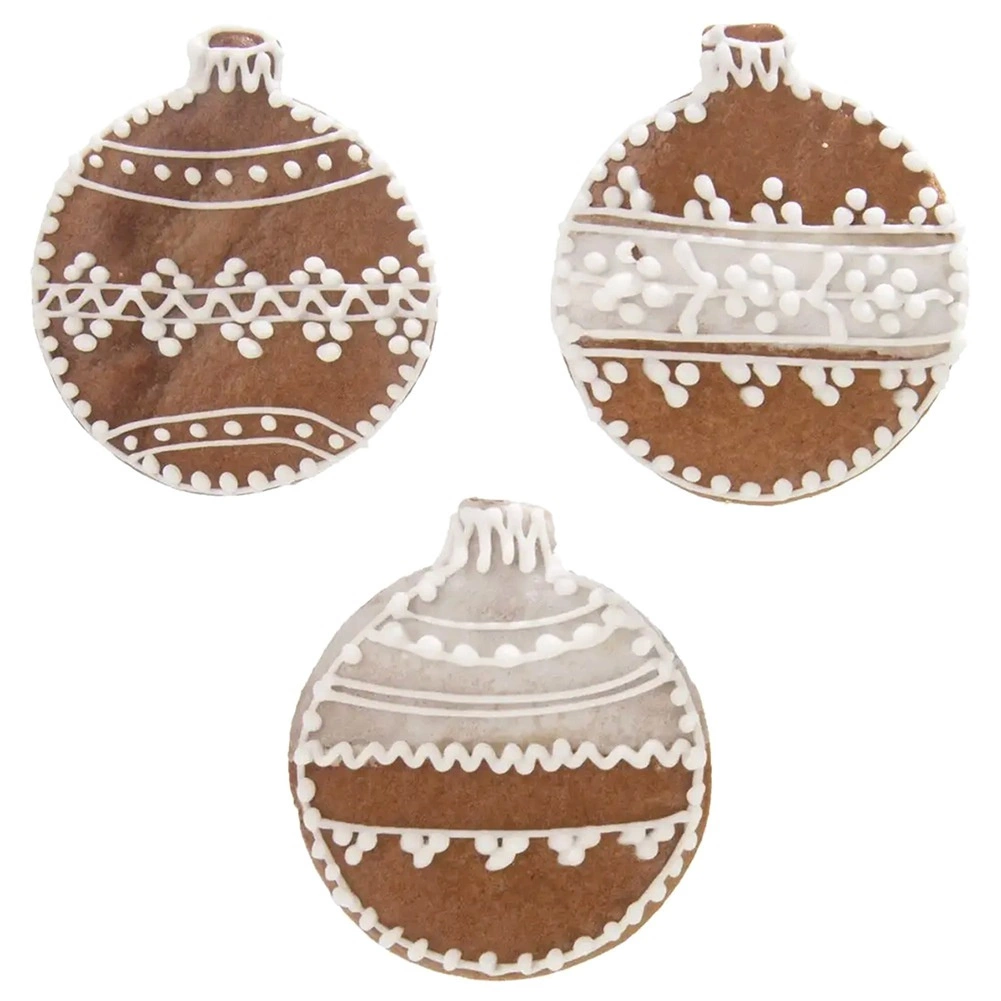 Izveidojiet burvīgus Ziemassvētku cepumus un piparkūkas ar bumbas formas formiņu. Kvalitatīvs nerūsējošais tērauds nodrošina ilgu kalpošanas laiku un tīru griezumu mīklā, lai jūsu cepumi izskatītos profesionāli. Pateicoties kompaktajiem izmēriem 7 × 6 cm, lieliski der gan klasiskām, gan bagātīgi dekorētām formām.