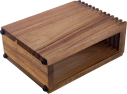 Spraugu izkārtojums ļauj universāli glabāt nažus no dažādiem materiāliem (tērauds, keramika un kombinētie), tostarp virtuves šķēres. Pretslīdes kājiņas novērš slīdēšanu un pasargā darba virsmu no saskrāpēšanas. Pateicoties kompaktajiem izmēriem, tas neaizņem lieku vietu, tomēr ietilpina daudz instrumentu.