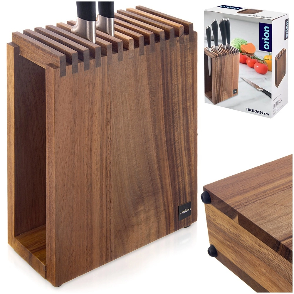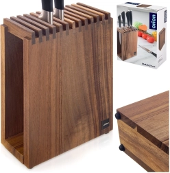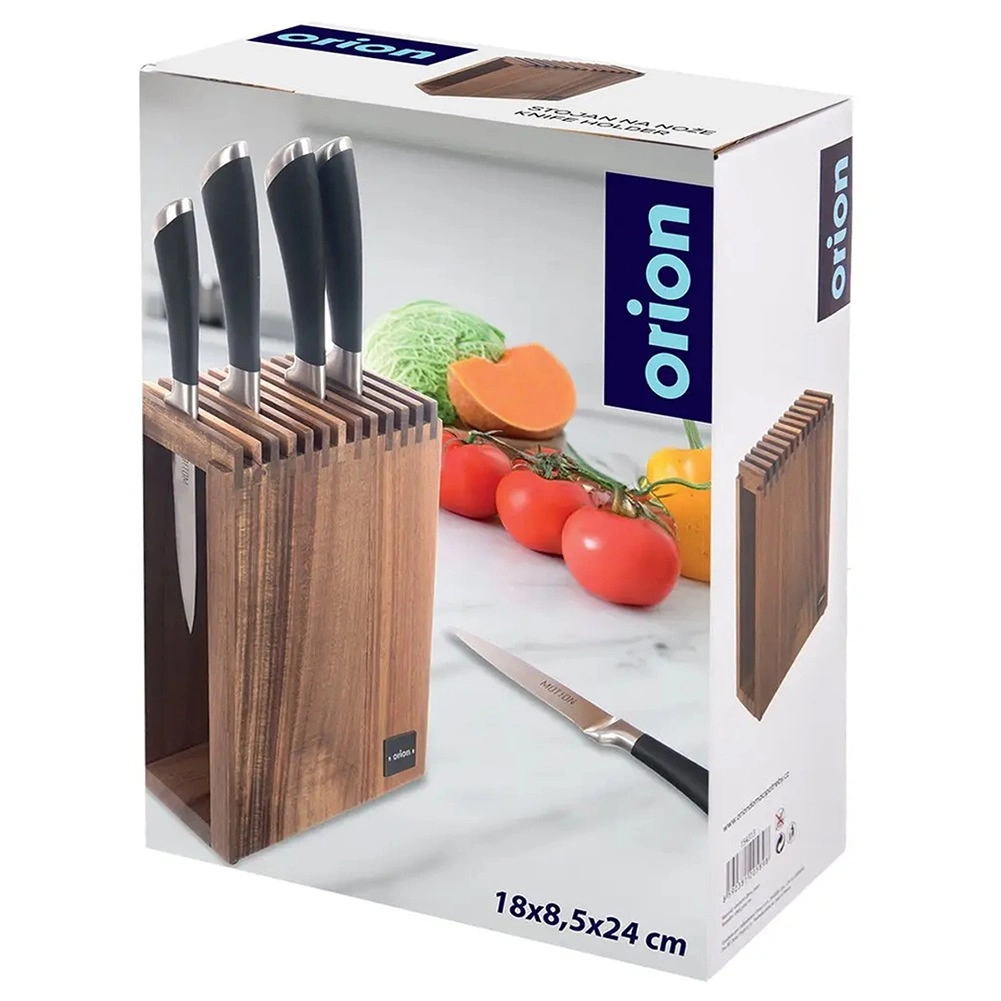 Šis premium klases statīvs no riekstkoka apvieno funkcionalitāti un estētiku. Tas kārtīgi sakārto jūsu virtuves nažus, aizsargā to asmeņus un vienlaikus nodrošina ērtu piekļuvi. Dabiskā riekstkoka brūnā nokrāsa piešķir virtuvei siltu, elegantu akcentu.