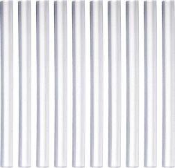 Universālas caurspīdīgas kausējamās līmes nūjiņas ar diametru 7 mm un garumu 10 cm precīzai līmēšanai mājās un radošos projektos. Iepakojumā 10 gabali ilgākai lietošanai. Nodrošina stipru savienojumu, tīru uzklāšanu un plašu pielietojumu papīram, kokam un tekstilizstrādājumiem.