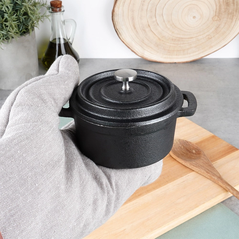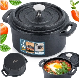 Šis miniatūrais čuguna katliņš kokotes formā izceļas ar izturīgu konstrukciju un daudzpusību. Tas ir piemērots plītij, tieši uz uguns un krāsnī, tāpēc viegli pagatavosiet un pasniegsiet zupas, mērces, sacepumus, dārzeņus vai desertus.