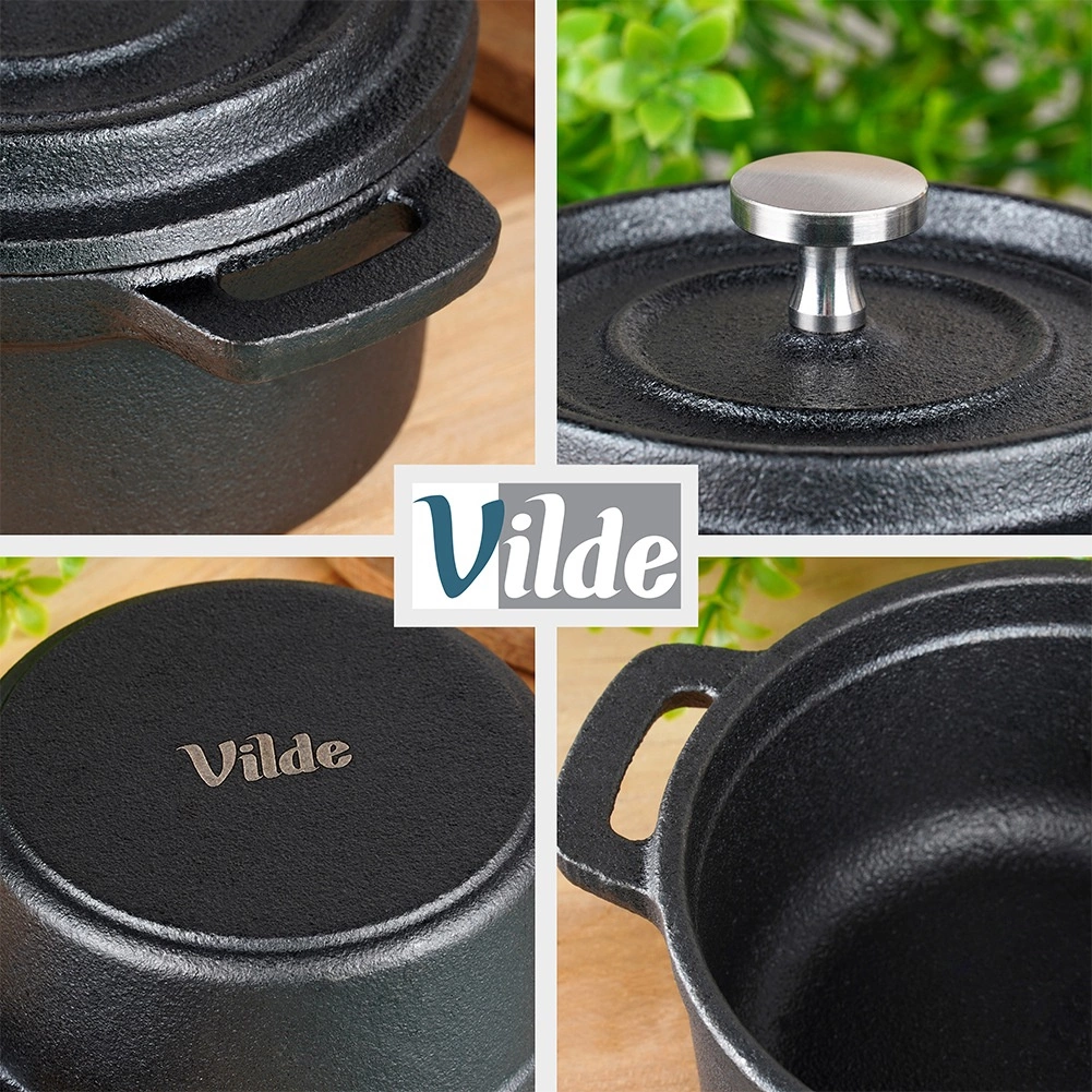 Katliņš iztur augstas temperatūras un ir piemērots plītij, tieši uz liesmas un krāsnī. Cieši piegulošais vāks ar nerūsējoša tērauda rokturi saglabā tvaiku un garšu.