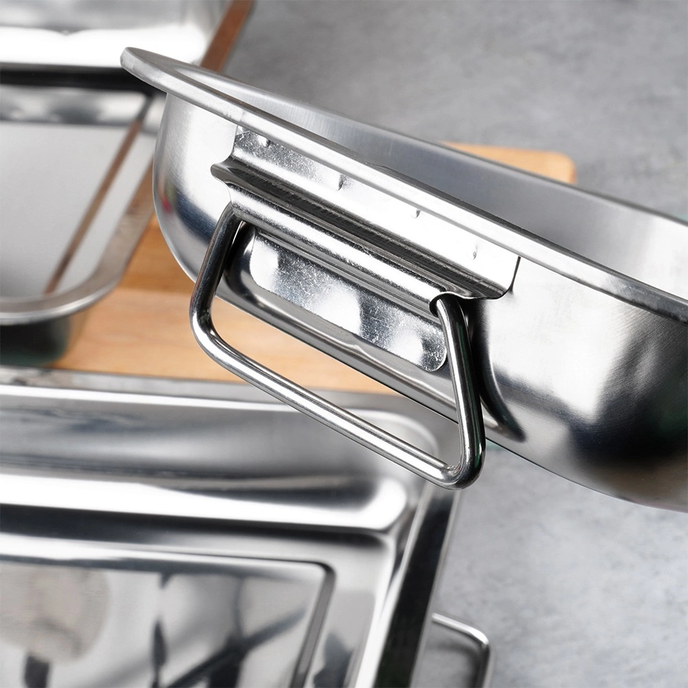 Trīs nerūsējošā tērauda cepamtrauku komplekts dažādos izmēros ir ideāls gan ģimenes gatavošanai, gan profesionālai lietošanai. Biezas sienas un kvalitatīvs nerūsējošais tērauds nodrošina vienmērīgu siltuma sadali un ilgmūžību. Salokāmi sānu rokturi ļauj droši pārnēsāt un vienlaikus taupa vietu glabāšanas laikā.