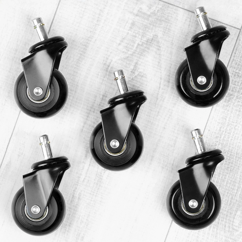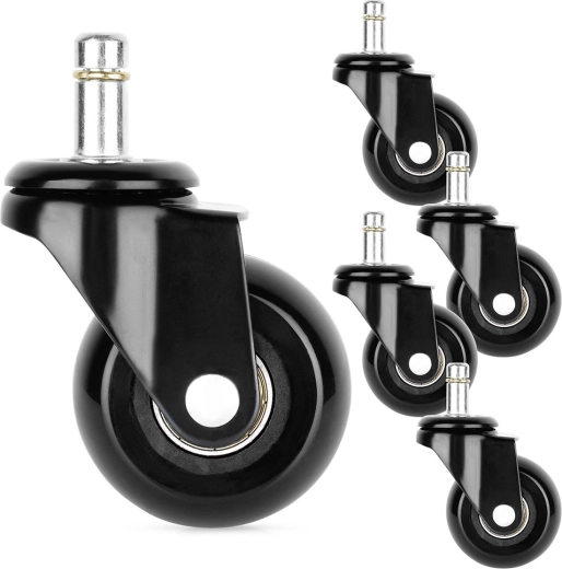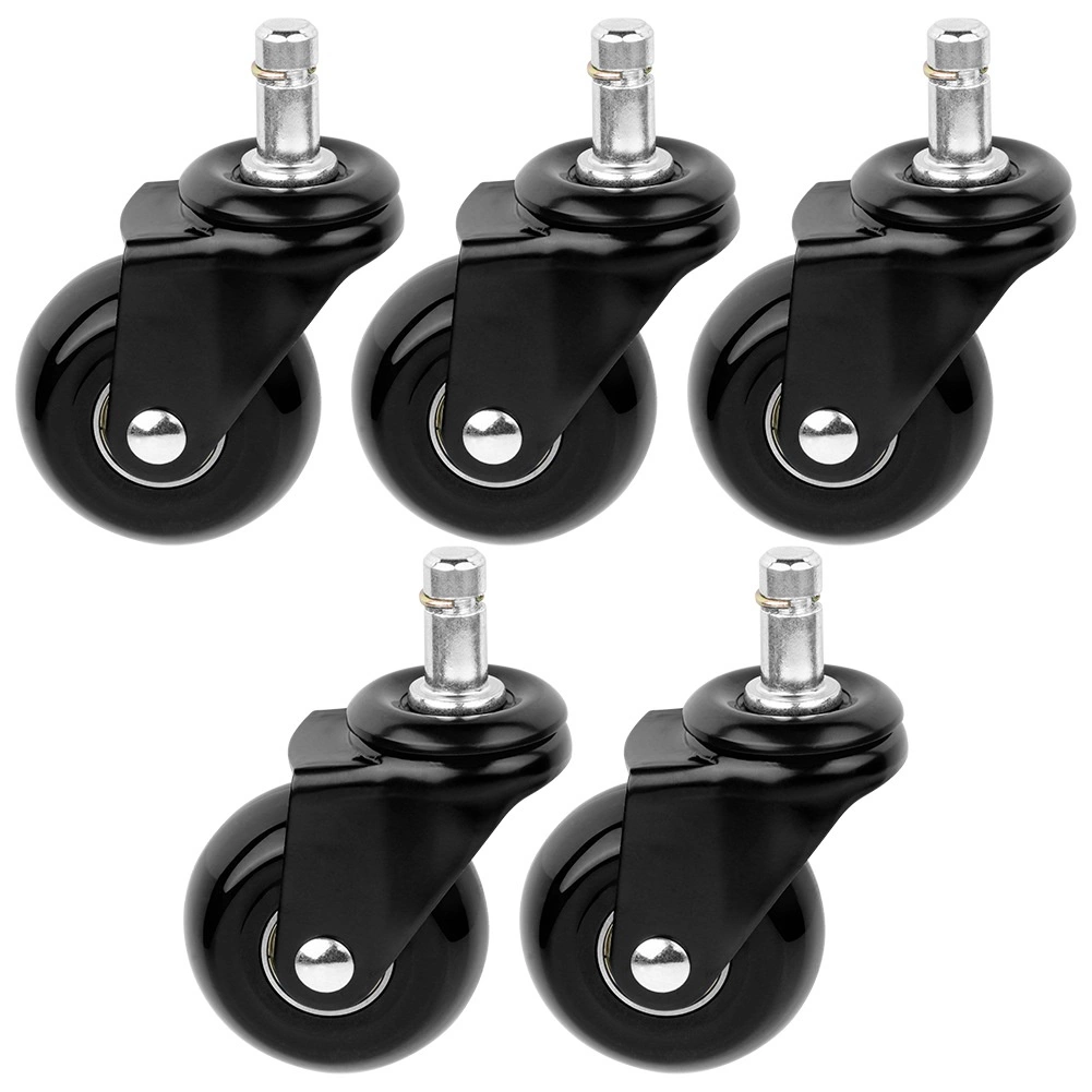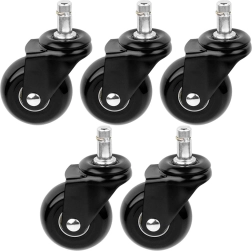 Praktisks piecu rezerves ritenīšu komplekts biroja krēslam nodrošina klusu un vienmērīgu kustību pa cietām grīdām. Gumijas virsma samazina troksni un vibrācijas, vienlaikus aizsargājot grīdas no skrāpējumiem. Pateicoties 50 mm ritenīšu diametram un metāla 10 mm tapai, tie viegli der plašam krēslu klāstam.