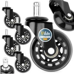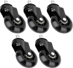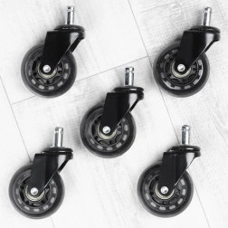 Uzlabojiet savu biroja krēslu ar 5 gumotu ritenīšu komplektu, kas garantē klusu un vienmērīgu kustību pa visām cietajām grīdām. Pateicoties izturīgam materiālam, ritenīši ir nodilumizturīgi un saudzīgi pret virsmām, tāpēc nav jābaidās no skrāpējumiem ne birojā, ne mājās.
