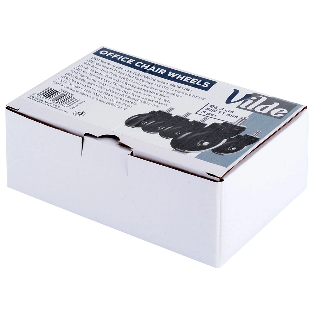 Standarta ritenīša diametrs 63 mm un 11 mm tapa nodrošina plašu saderību ar lielāko daļu biroja krēslu (izņemot IKEA modeļus). Uzstādīšana aizņem tikai mirkli – bez instrumentiem, vienkārši izņemiet vecos ritenīšus un ievietojiet jaunos.