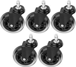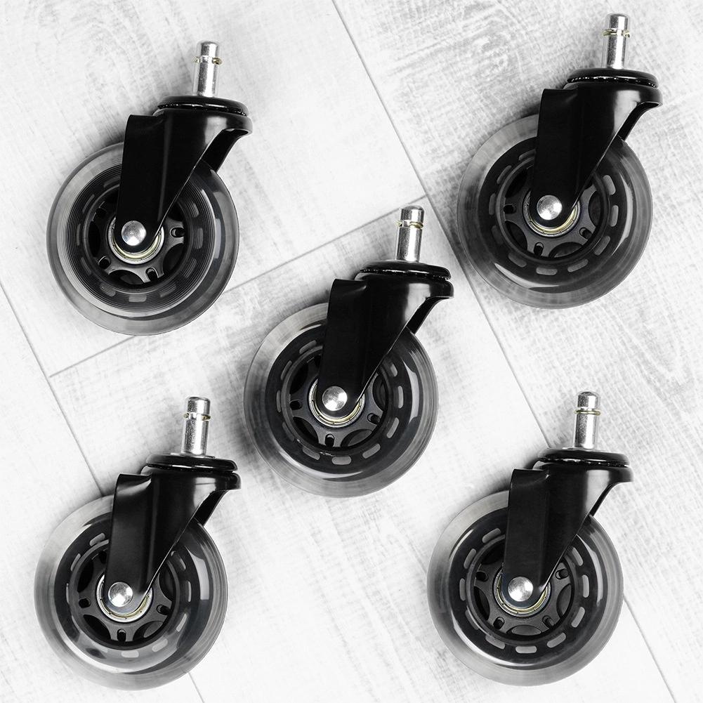 Piecu rezerves ritenīšu komplekts biroja krēsliem nodrošina ērtu un kultivētu pārvietošanos pa cietām grīdām. Izturīgie kaučuka ritenīši samazina troksni, saudzē virsmas un, pateicoties kvalitatīviem gultņiem, nodrošina plūdenu rotāciju arī ilgstošas lietošanas laikā.