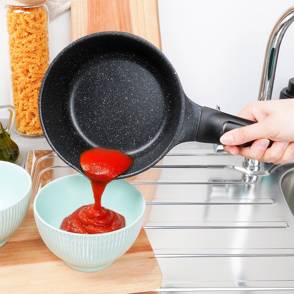 Kastrolis no izturīga alumīnija ar granīta nelīpošo pārklājumu PFLUON GRANIT ir lieliska izvēle mērču, zupu, putru pagatavošanai vai piena ātrai uzsildīšanai. Pārklājums ir izturīgs pret skrāpējumiem, nesatur PFOA un PTFE, un uztur vienmērīgu temperatūru pa visu virsmu. Pateicoties liešanas snīpim, šķidrumus var viegli un tīri pārliet.