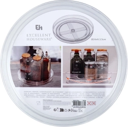 Organizators ar diametru 24 cm un augstumu 3,5 cm ir ideāli piemērots ledusskapim, virtuves skapīšiem, darba virsmai un vannasistabai. Gludo virsmu ir viegli kopt – pietiek to noslaucīt ar mitru drānu. Rotējošā konstrukcija vienlaikus maksimizē vietas izmantojumu un uztur kārtību.