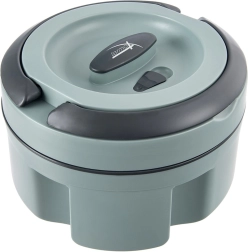 2,4 l termo pārtikas trauks apvieno izturīgu nerūsējošā tērauda iekšpusi ar stingru plastmasas korpusu modernā mentola krāsā. Pateicoties kvalitatīvam blīvējumam un vākā integrētajam vārstam, saturs ir droši noslēgts bez noplūžu riska, ar iespēju to viegli atvērt pēc spiediena atbrīvošanas.