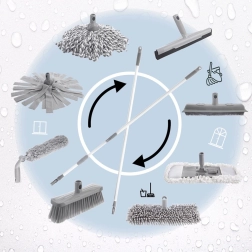Universālais vītņojums un vienkārša click stiprināšana nodrošina saderību ar mopiem, slotām un birstēm, ļaujot ātri mainīt piederumus.