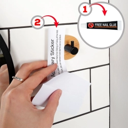 Āķi piestiprināsiet ar spēcīgu līmi un palīglīmplēvēm. Nepieciešama tīra, gluda virsma, un pēc 72 stundām savienojums būs maksimāli izturīgs.