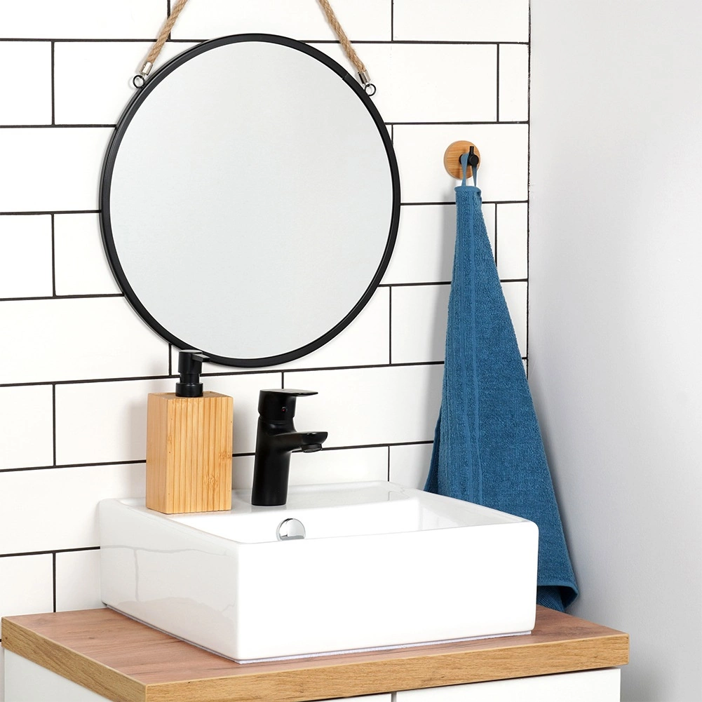 Apaļa bambusa pamatne apvienojumā ar melnu metāla tapu piešķir interjeram mūsdienīgu, elegantu akcentu un lieliski saskan gan ar vannasistabu, gan virtuvi.