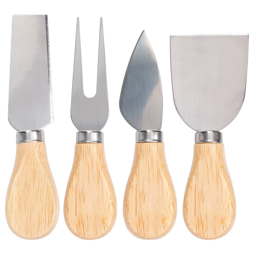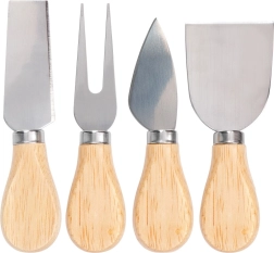 Pilns komplekts ar diviem nažiem, lāpstiņu un dakšiņu dažādu siera veidu griešanai, porcionēšanai un pasniegšanai.