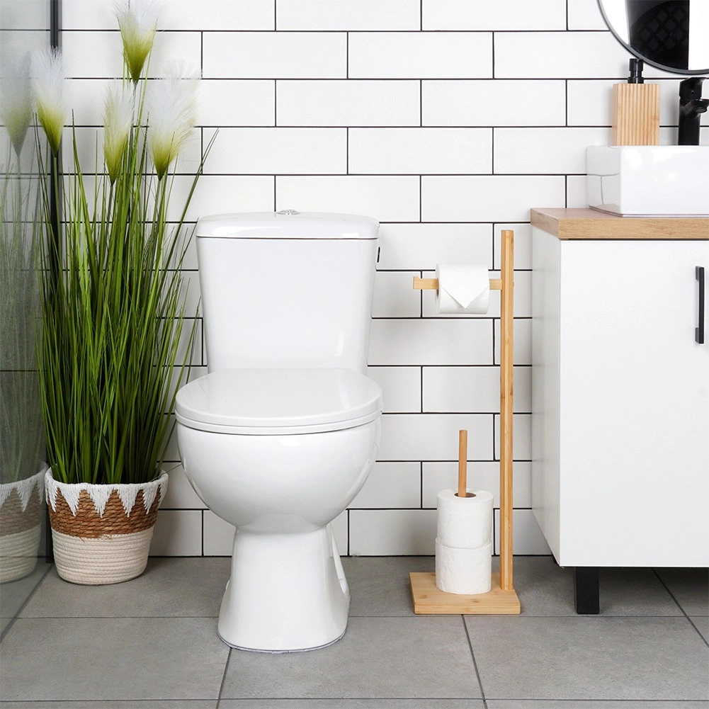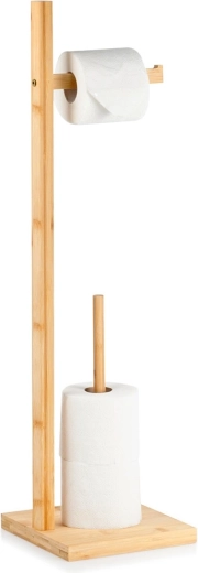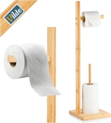Praktisks un stilīgs papildinājums jebkurai vannas istabai: statīvs no kvalitatīva bambusa koka apvieno turētāju ērtai attinšanai un viedu vertikālu rezerves ruļļu glabāšanu. Kompakts dizains taupa vietu un nodrošina, ka tualetes papīrs vienmēr ir pa rokai.