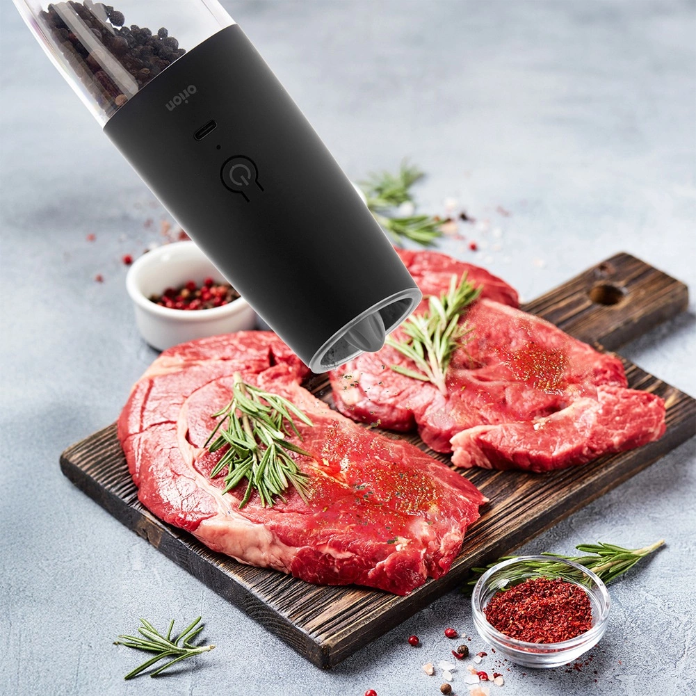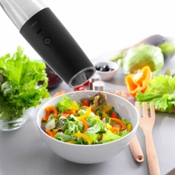 Izbaudiet svaigi samaltas garšvielas ar vienu rokas kustību. Elektriskās dzirnaviņas ar uzlādējamu akumulatoru iedarbojas automātiski, pagriežot tās ar apakšu uz augšu, un pateicoties keramiskajam mehānismam, viegli tiek galā arī ar cietākām sēkliņām. Caurspīdīgā tvertne ļauj ērti kontrolēt daudzumu, bet elegantais melnais dizains lieliski iederēsies gan uz virtuves virsmas, gan uz galda.