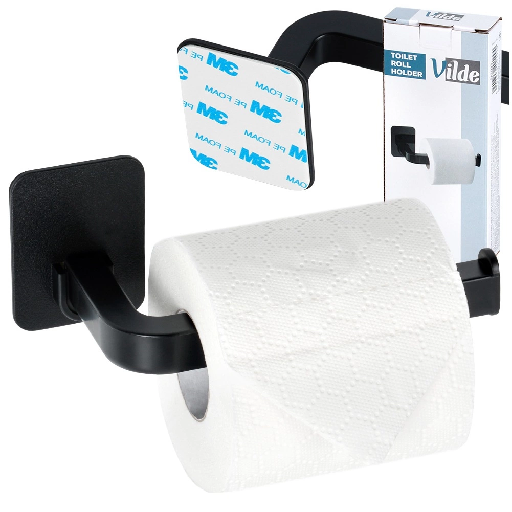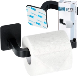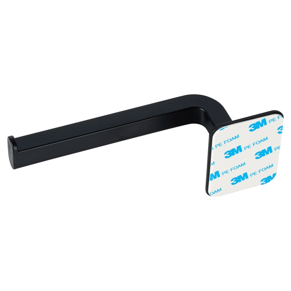 Elegants tualetes papīra turētājs melnā krāsā ar 3M pašlīmējošu montāžu bez urbšanas. Kompakti izmēri 16,5 × 7 × 6,5 cm, mūsdienīgs minimālistisks dizains, viegla ruļļa nomaiņa un droša stiprināšana uz gludām virsmām.