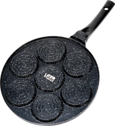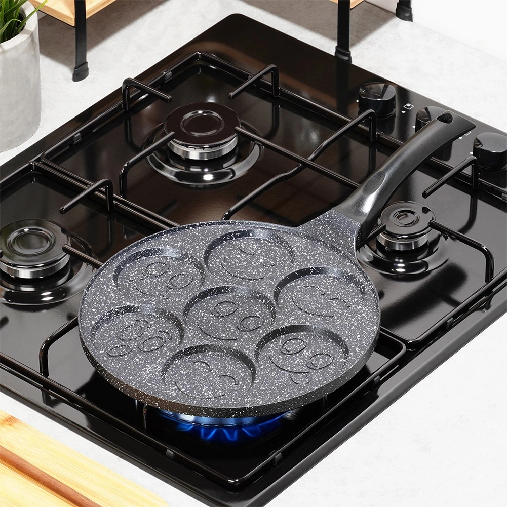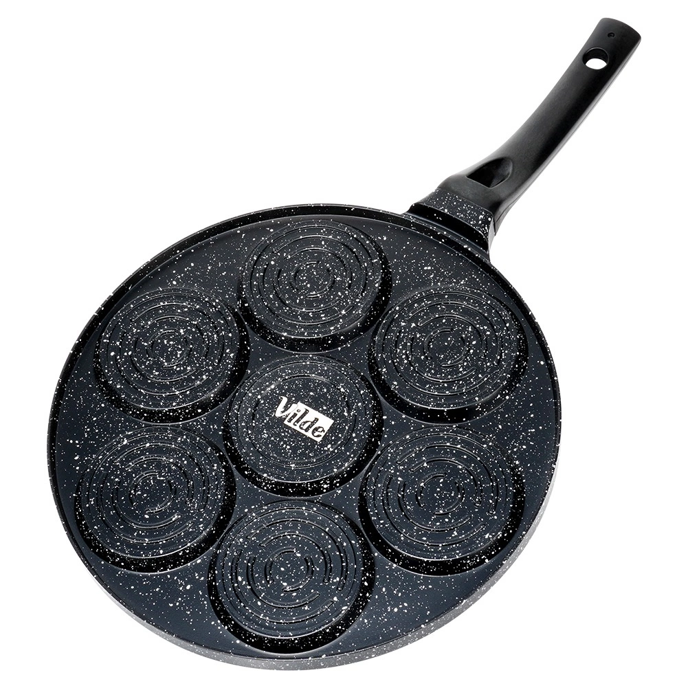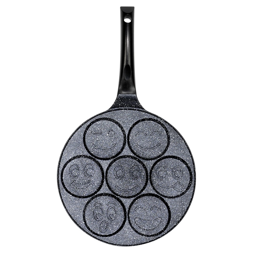 Izveidojiet perfektas brokastis visai ģimenei: 7 apaļi iedobumi ar jautriem “smiley” motīviem nodrošina vienādas porcijas plācenīšiem, mini pankūkām vai vēršacīm. Nepiedegošais granīta pārklājums nodrošina vieglu apgrozīšanu un pasniegšanu, kā arī samazina eļļas patēriņu.
