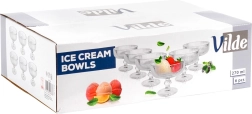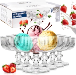 Elegantas stikla saldējuma glāzes ar tilpumu 270 ml praktiskā 6 gab. komplektā. Izgatavotas no izturīga, caurspīdīga, rievota stikla ar stabilu kājiņu drošai pasniegšanai. Ideāli piemērotas saldējumam, sorbetam, jogurtam, tiramisū un augļu salātiem, kā arī piemērotas uzkodēm (finger food). Piemērotas trauku mazgājamajai mašīnai ērtai kopšanai.