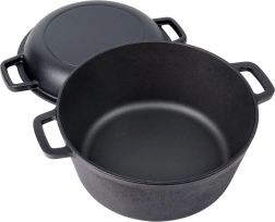 Čuguna katls ar tilpumu 4,5 l un praktisku vāku (1,6 l), ko var izmantot arī kā seklu pannu vai nelielu cepamtrauku. Pilnībā čuguna izpildījums izceļas ar lielisku siltumvadītspēju un siltuma saglabāšanu, tāpēc ēdieni būs sulīgi, vienmērīgi izcepušies un ilgi silti pasniegšanas laikā.