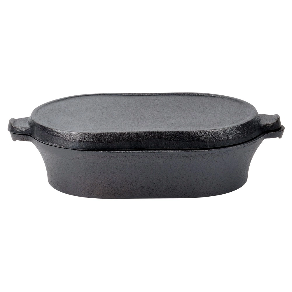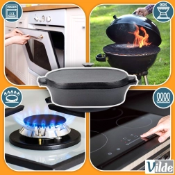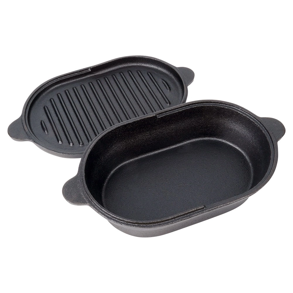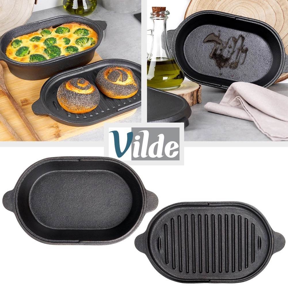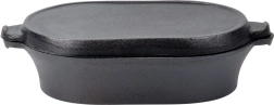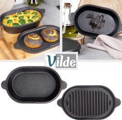 Šī ovālā lējčuguna cepamforma ar praktisku 2v1 vāku ir radīta ikdienas un svētku gatavošanai. Apakšējā daļa kalpo kā dziļāks pekstis gaļai, kartupeļiem vai dārzeņiem, savukārt vāks ar rievotu dibenu darbojas kā atsevišķa grilpanna perfektai apcepšanai ar restotu rakstu.