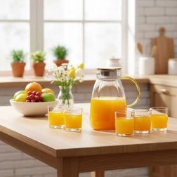 Tilpums 2,2 l ir ideāli piemērots ģimenes maltītēm, dārza pasēdēšanām un ikdienas dzeršanas režīmam. Krūka ir šaura, tāpēc ērti ievietojas ledusskapja durvīs, un pēc lietošanas to var viegli izmazgāt trauku mazgājamajā mašīnā. Lieliski piemērota ūdenim, mājās gatavotām limonādēm, sulām, kompotiem vai iced tea.