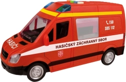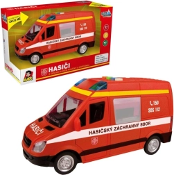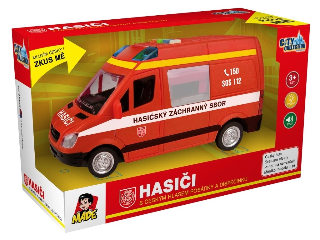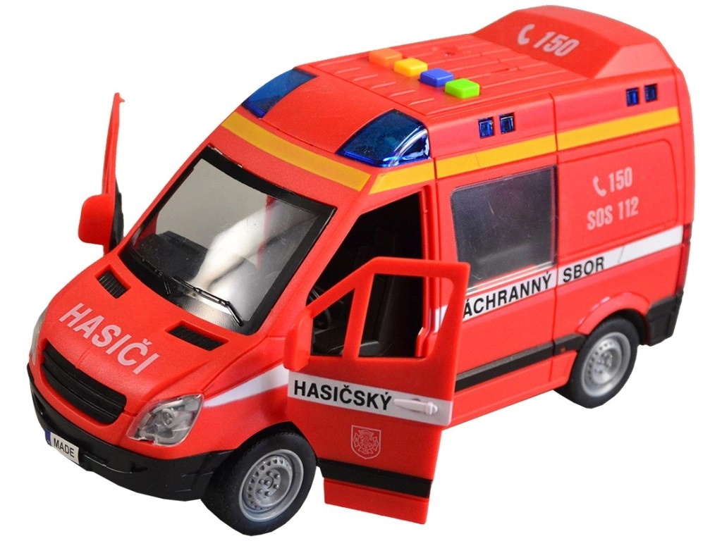 Šis ugunsdzēsēju furgons sajūsminās visus mazos glābējus ar reālistisku izpildījumu un funkcijām. Nospiežot pogas, dzirdēsiet čehu dispečera un ekipāžas balsis un redzēsiet mirgojošu bākuguni. Pateicoties inerces piedziņai, mašīnu pietiek nedaudz pašķūpot, un tā dosies uz priekšu.