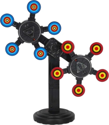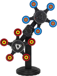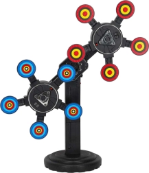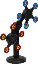 Trenējiet mērķēšanu un ātras reakcijas ar elektronisko mērķi, kas griežas un maina tempu. Pateicoties digitālajai trāpījumu uzskaitei, jūs saņemsiet tūlītēju atgriezenisko saiti, un katrs spēlētājs redzēs savu rezultātu. Krāsaini mērķi ar centrālajiem apļiem piesaista uzmanību un motivē turpināt mēģinājumus.